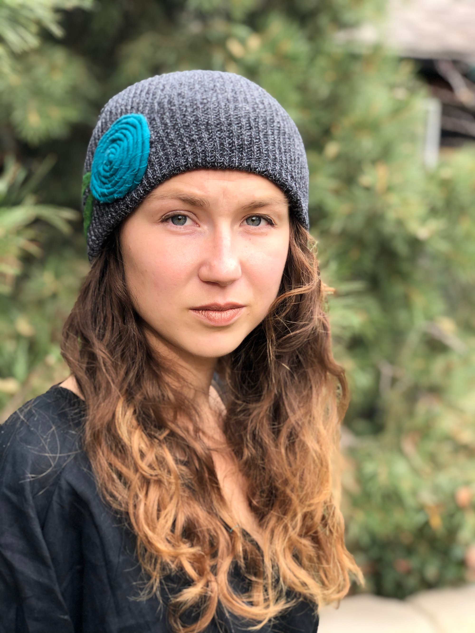 Slouchy hat- Turquoise flower